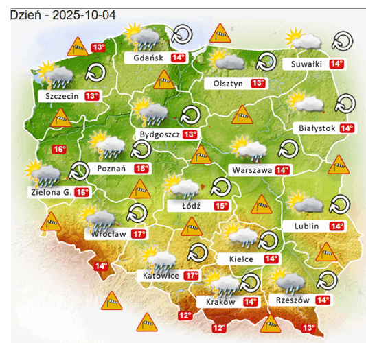 W kolejnych godzinach a dokładnie przez weekend pogodę w naszym kraju oraz nad morzem i w górach kształtować będzie dynamiczny układ niskiego ciśnienia z frontami atmosferycznymi. Ponadto będą mogły pojawić się burze z opadami konwekcyjnymi i silnym wiatrem, który może powodować szkody i przerwy w dostawie prądu elektrycznego.