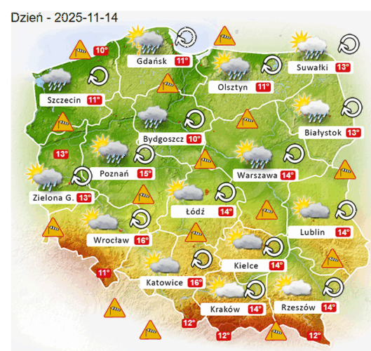 W piątek będzie ciepło i deszczowo! – Prognoza na 14 listopada