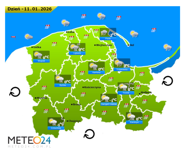 W kolejnych godzinach a dokładnie przez weekend pogodę na Pomorzu i Wybrzeżu nadal kształtować będzie układ niskiego ciśnienia z frontami atmosferycznymi. Poza tym nad wodami Morza Bałtyckiego i na północy Polski ponownie pojawią się śnieżyce z umiarkowanym i silnym wiatrem, który może przyczynić się do szkód i przerw w dostawie prądu elektrycznego.