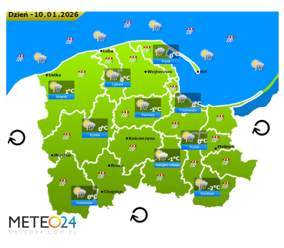 W kolejnych godzinach a dokładnie przez weekend pogodę na Pomorzu i Wybrzeżu nadal kształtować będzie układ niskiego ciśnienia z frontami atmosferycznymi. Poza tym nad wodami Morza Bałtyckiego i na północy Polski ponownie pojawią się śnieżyce z umiarkowanym i silnym wiatrem, który może przyczynić się do szkód i przerw w dostawie prądu elektrycznego.