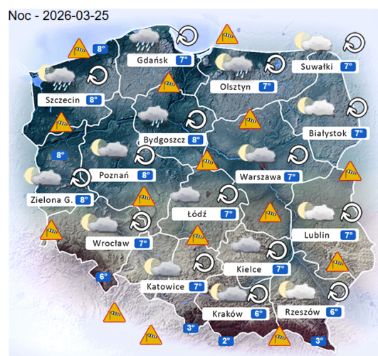 W kolejnych godzinach a dokładnie w środę pogodę w naszym kraju oraz nad morzem i w górach kształtować będzie układ niskiego ciśnienia z frontami atmosferycznymi. Poza tym możliwe są lokalne burze z umiarkowanym i silnym wiatrem, który może przyczynić się do szkód i przerw w dostawie prądu elektrycznego. Dodatkowo do Polski i nad wody Morza Bałtyckiego napływać będzie wilgotne oraz między innymi chłodne i ciepłe powietrze z północnego zachodu i południowego zachodu Europy.