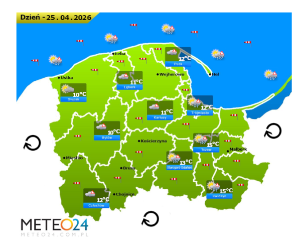 W kolejnych godzinach a dokładnie przez weekend pogodę na Pomorzu i Wybrzeżu nadal kształtować będzie płytka zatoka niżowa z frontami atmosferycznymi oraz układ wysokiego ciśnienia atmosferycznego. Poza tym da się we znaki umiarkowany i silny wiatr, który może powodować szkody i przerwy w dostawie prądu elektrycznego.